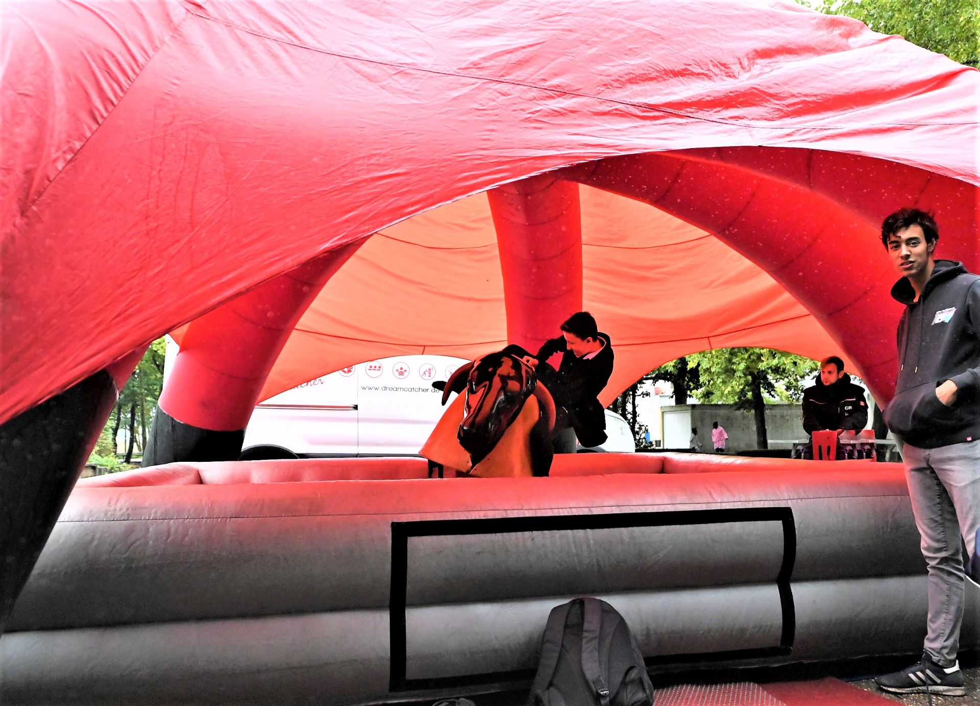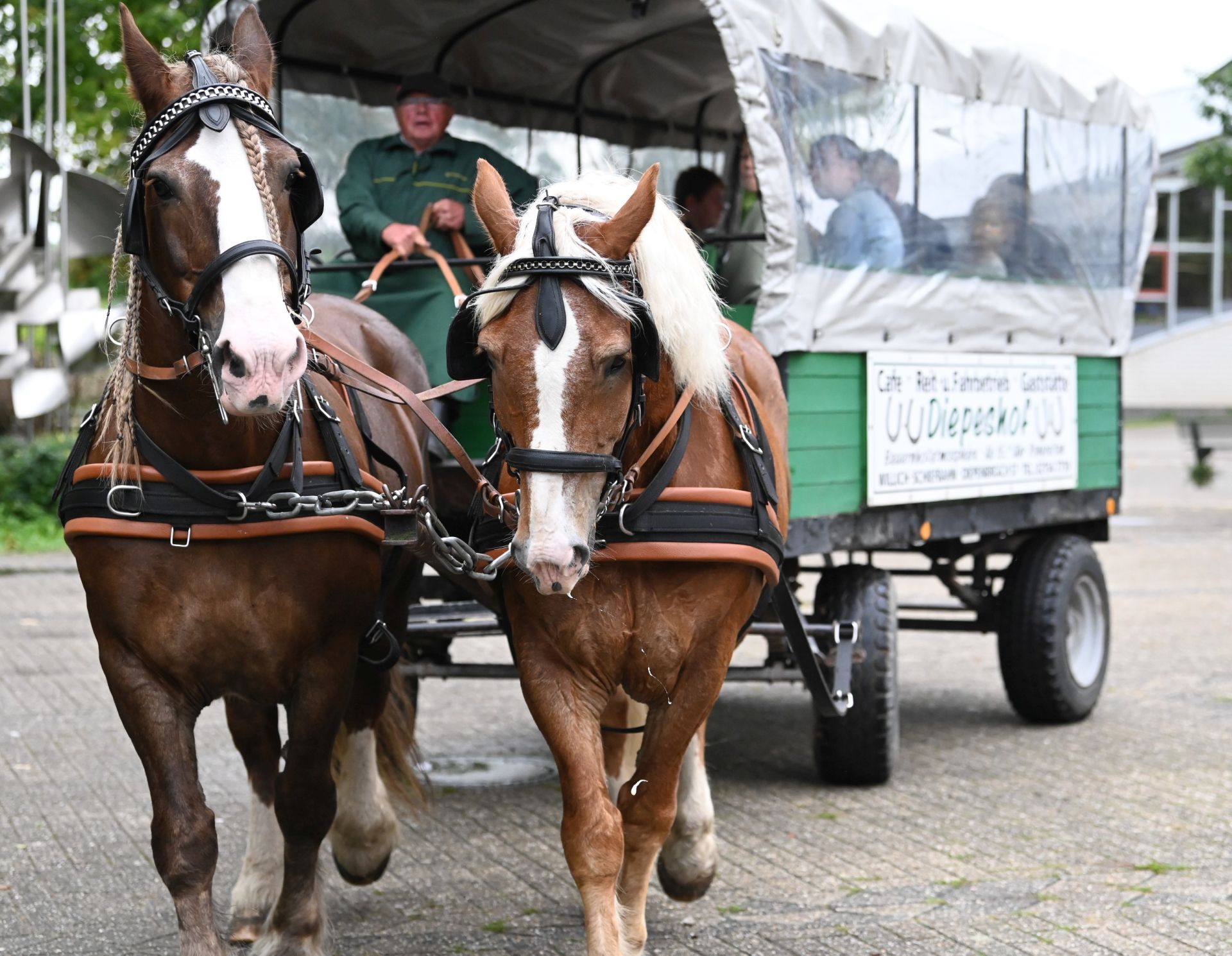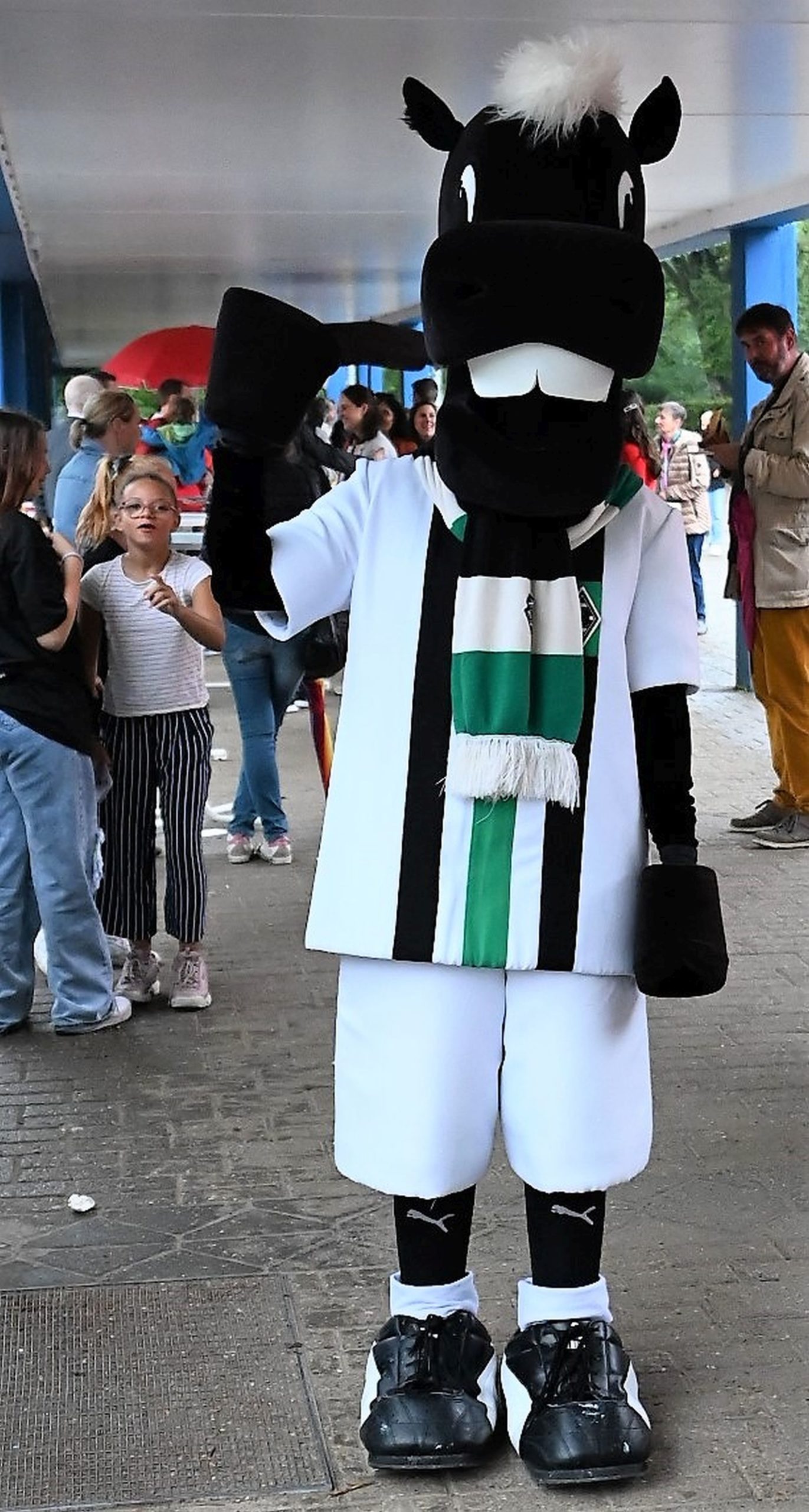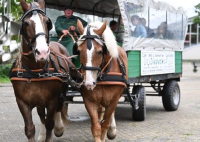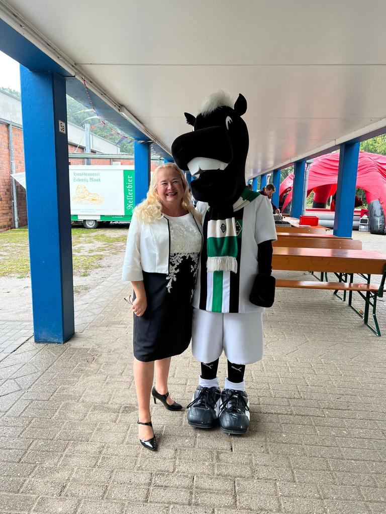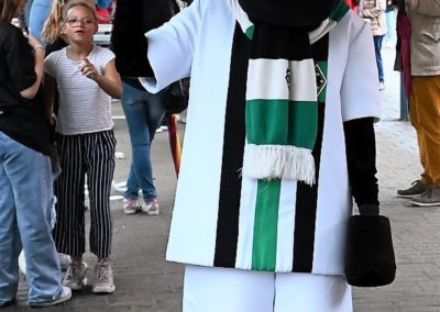 Zusätzlich haben die Kinder und Eltern Gelegenheit ab der Mittagszeit an 15minütigen Planwagenfahrten mit Pferdegespann rund um die Schule teilzunehmen. Auch das Maskottchen „Jünther“ von Borussia Mönchengladbach lässt es sich nicht nehmen, den zahlreichen Besucherinnen und Besuchern in und um die Halle für etliche „Selfies“ zur Verfügung zu stehen.