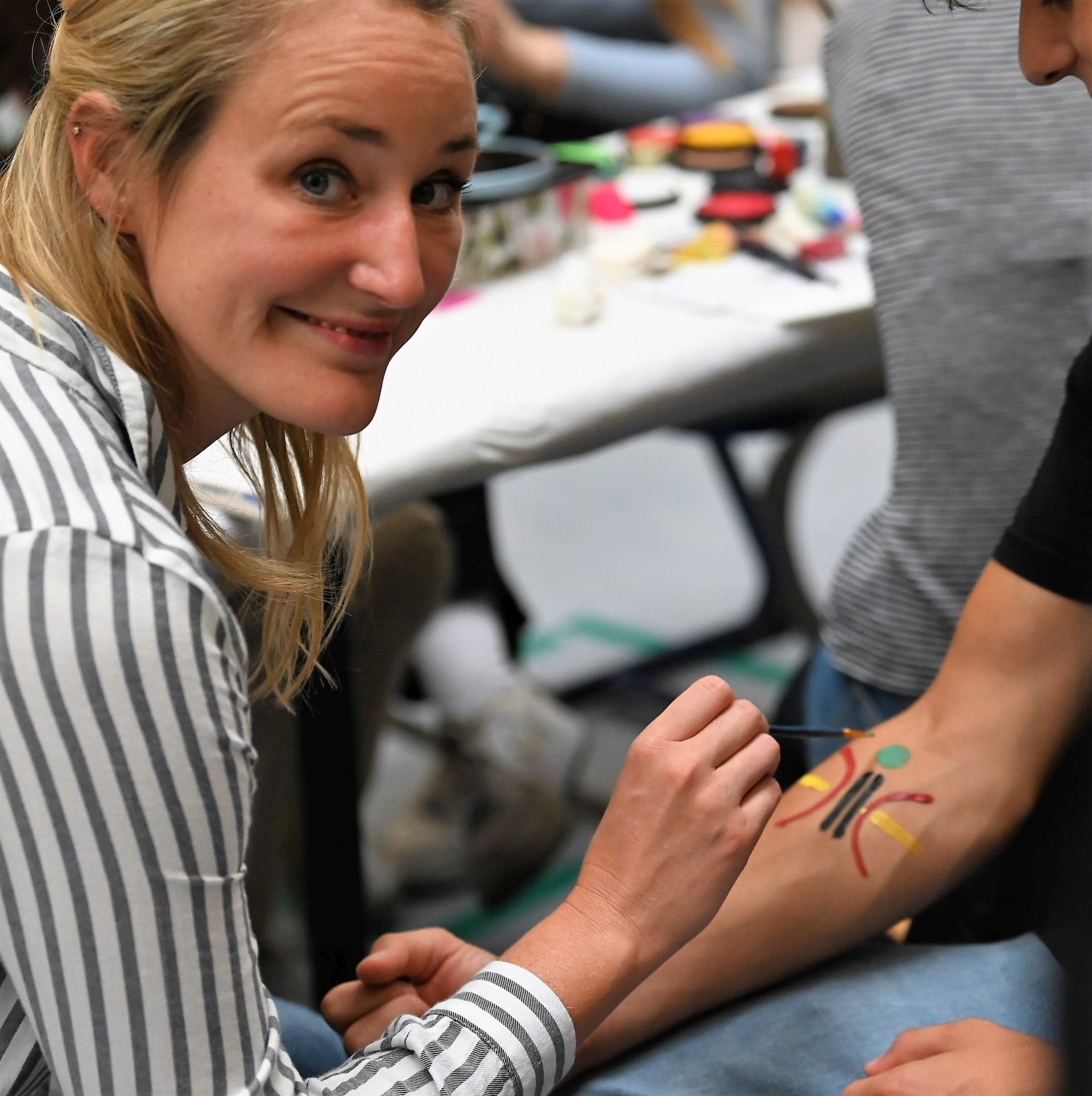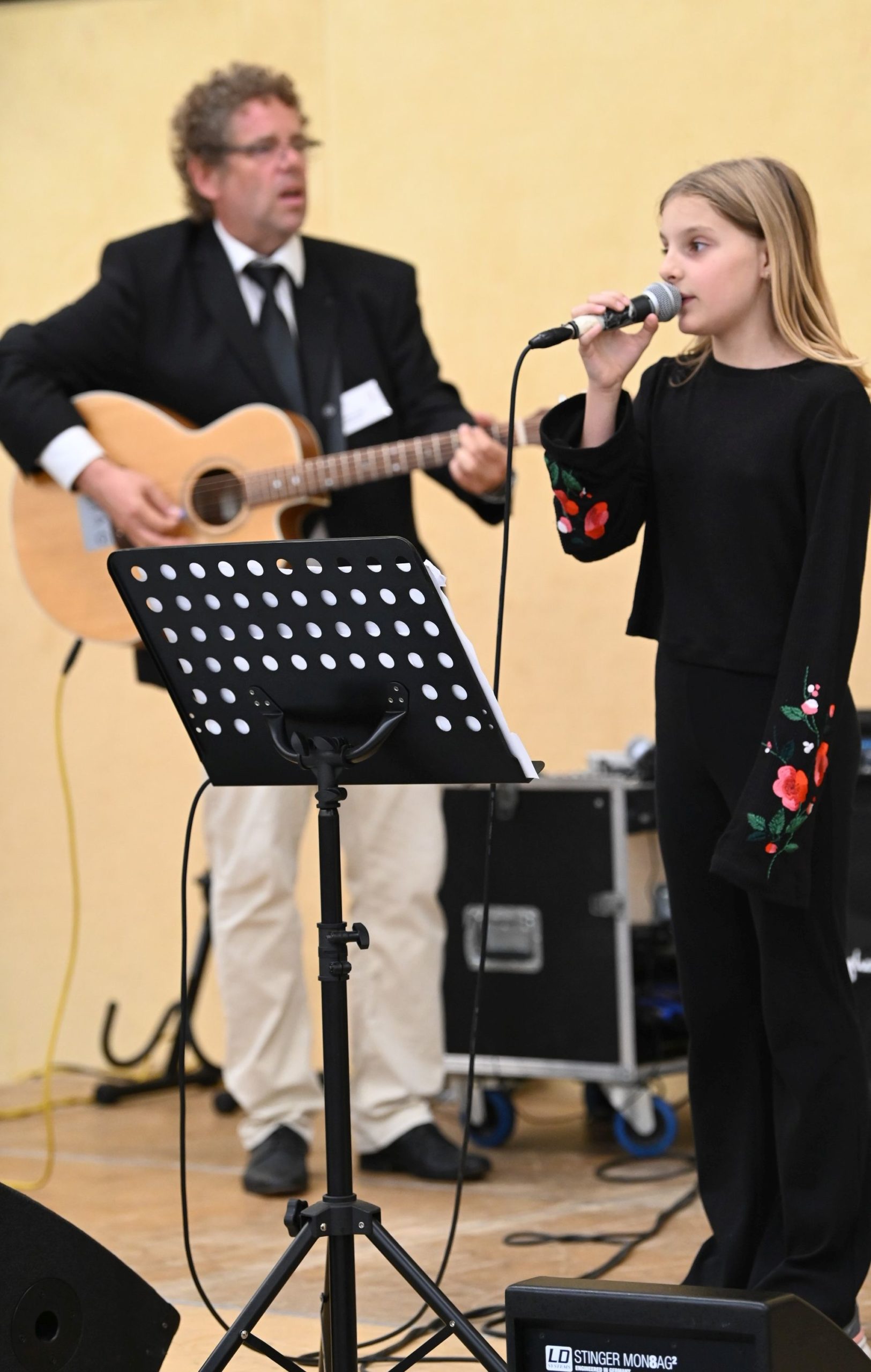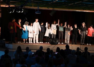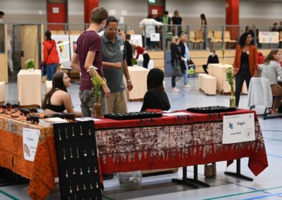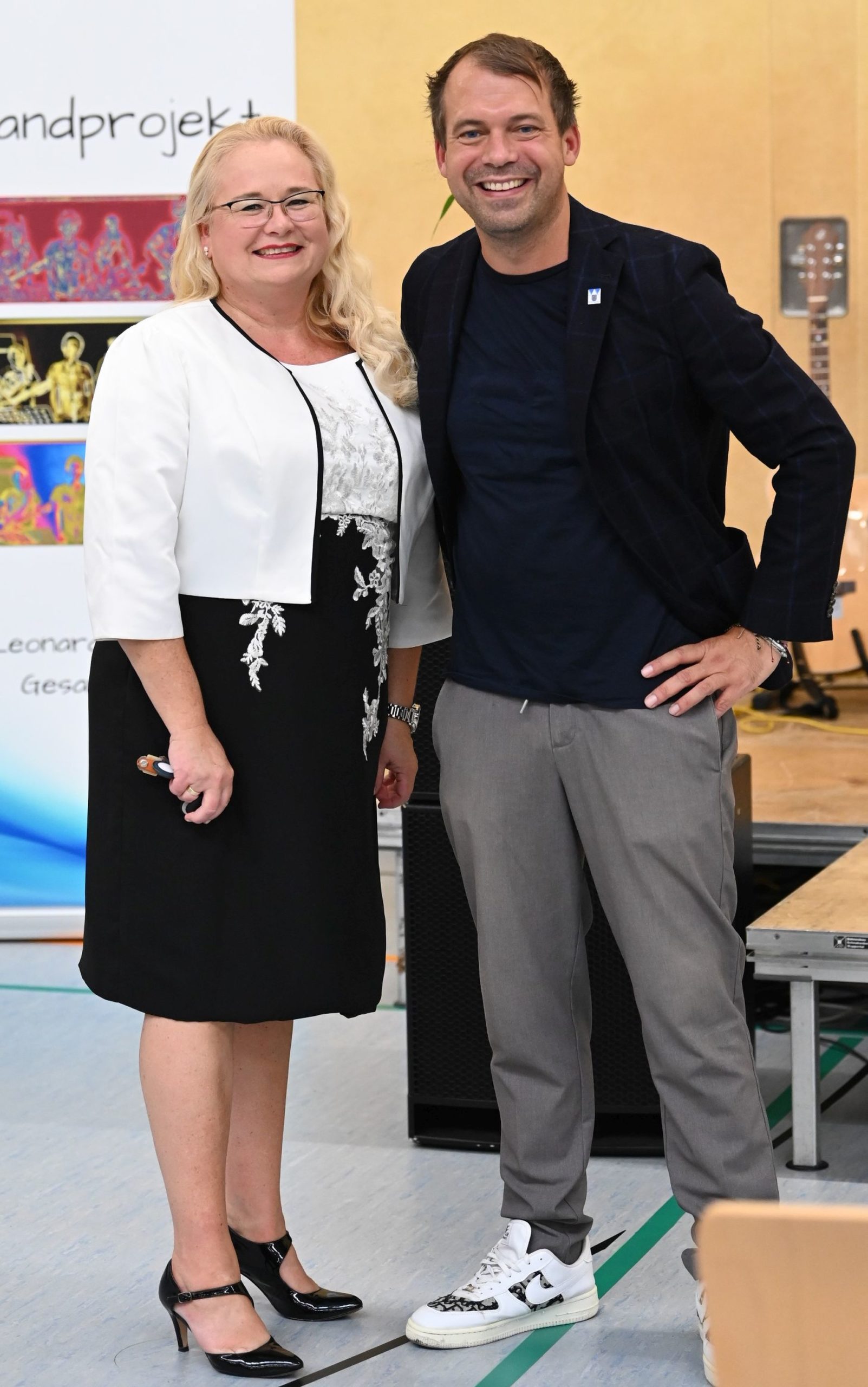 Zur sehr guten Stimmung tragen nicht zuletzt die „Live-Musik-Veranstaltungen“ des Tages bei. Eröffnet wird der Tag durch die virtuose Vorstellung eines Pianisten, Hannes Joachimi, der alle Anwesenden des offiziellen Empfangs zu entzücken weiß. Zudem erleben die Besucherströme in der Turnhalle beste Unterhaltung durch zwei schuleigene Bands unter der Leitung von Herrn Hagel (Lehrer für Sonderpädagogik), die mit ihrem Können an den Instrumenten und ihrem Gesang die Zuschauer zu begeistern wissen. Über den Nachmittag unterhalten dazu das Pop-Duo „Janson & Vogel“ in der Halle alle Schüler*Innen, Eltern, Lehrer*Innen und Gäste mit einem musikalischen Bühnenprogramm, das alle Beteiligte mit Begeisterung erfüllt.