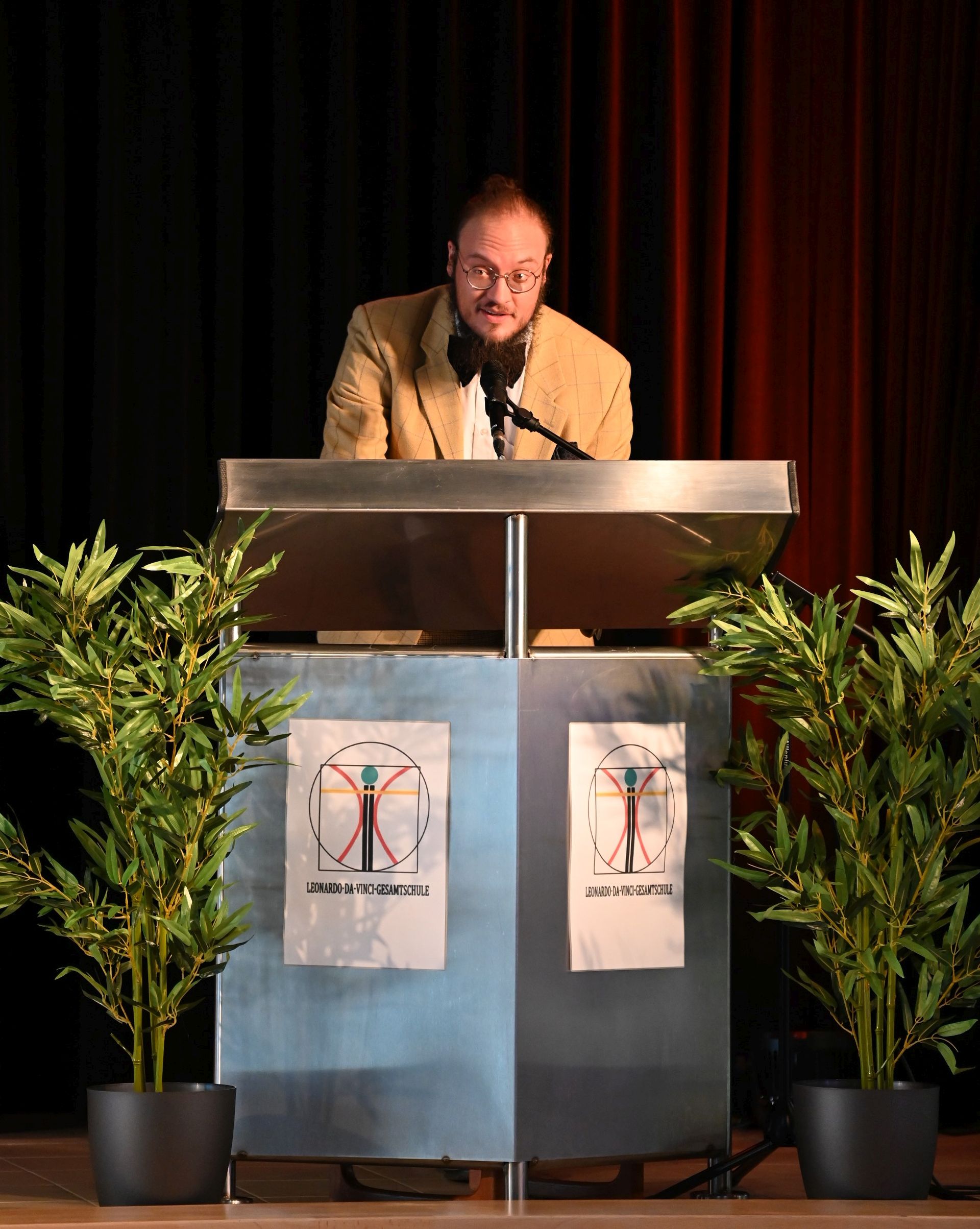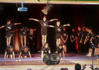Auch am Abend lässt es sich die Städt. Leonardo-da-Vinci-Gesamtschule zum Anlass ihres 10jährigen Bestehens nicht nehmen, mit dem Auftritt des Poetry-Slammers Patrick Salmen -mit freundlicher Unterstützung von Kultur Willich- eines letztes Highlight des Schulfestes zu setzen. Unter der äußerst amüsanten Moderation von Raphael Leßmann (Schüler der EF) unterhalten im Vorprogramm zum Poetry-Slam die Sportklasse 7d (Sportpyramide; Leitung Mara Beier; Klasse mit Sportprofil), der Theaterkurs der Oberstufe (Leitung Herr C. Struben) und die beiden Sängerinnen Fabienne Margies (Klasse 10) und Juliana Cremer-Ewald (Schülerin der Q2) das vollbesetzte PZ in bester Art und Weise. Unter viel Applaus findet das gelungene Schulfest mit dem Auftritt von Patrick Salmen gegen 22.00 Uhr zu seinem höchst erfolgreichen Ende.