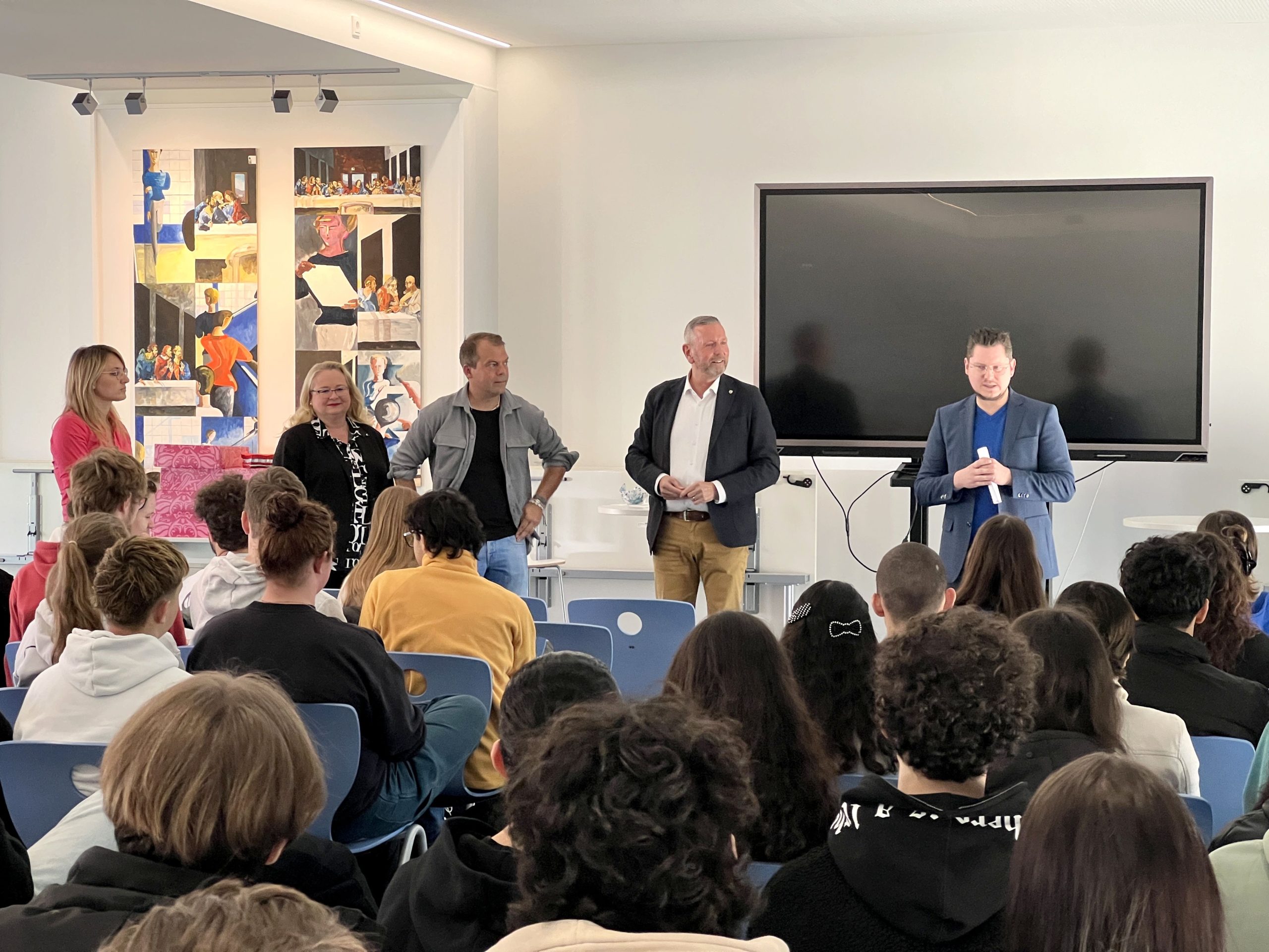 Am letzten Donnerstag haben uns Herr Pakusch und Herr Görtz besucht und sich den Fragen der Schülerinnen und Schüler unserer Oberstufe gestellt. Es ging um verschiedene Themen: sei es um konkrete Angelegenheiten, die Willich betreffen, als auch politische Themen die die gesamte Bundesrepublik (bspw, die Legalisierung von Cannabis oder die Migration) tangieren. Die Schülerinnen und Schüler waren angetan von der Offenheit der beiden Politiker. Die Diskussion war so interessant, dass die vorgesehene Zeit gar nicht ausreichte. Wir werden beide Politiker wieder einladen.