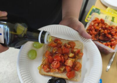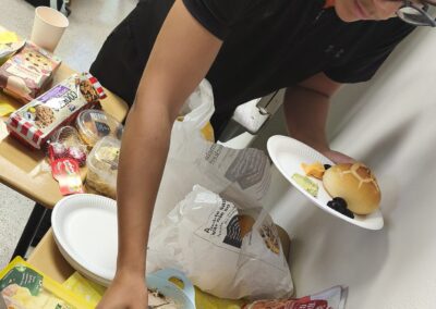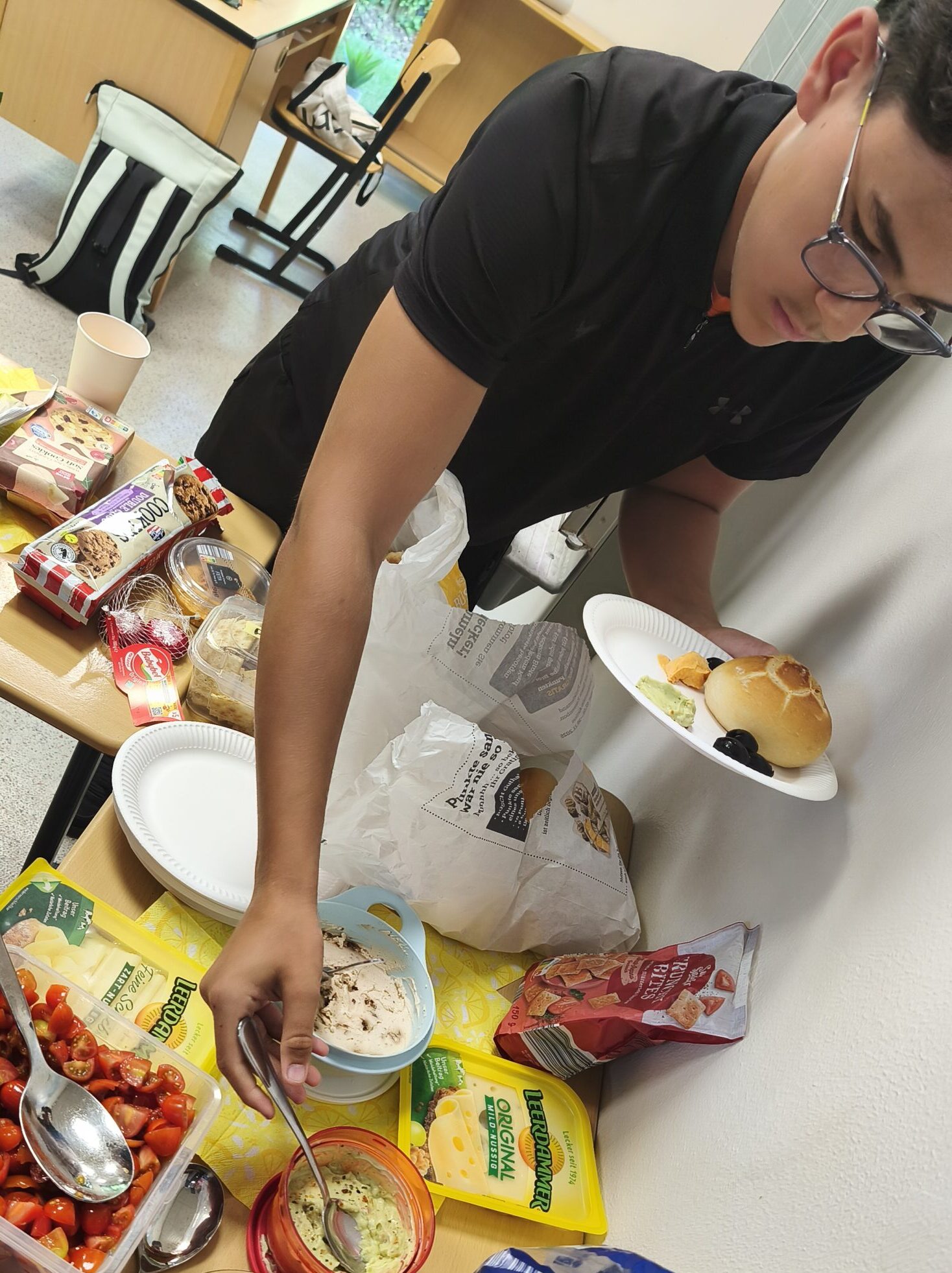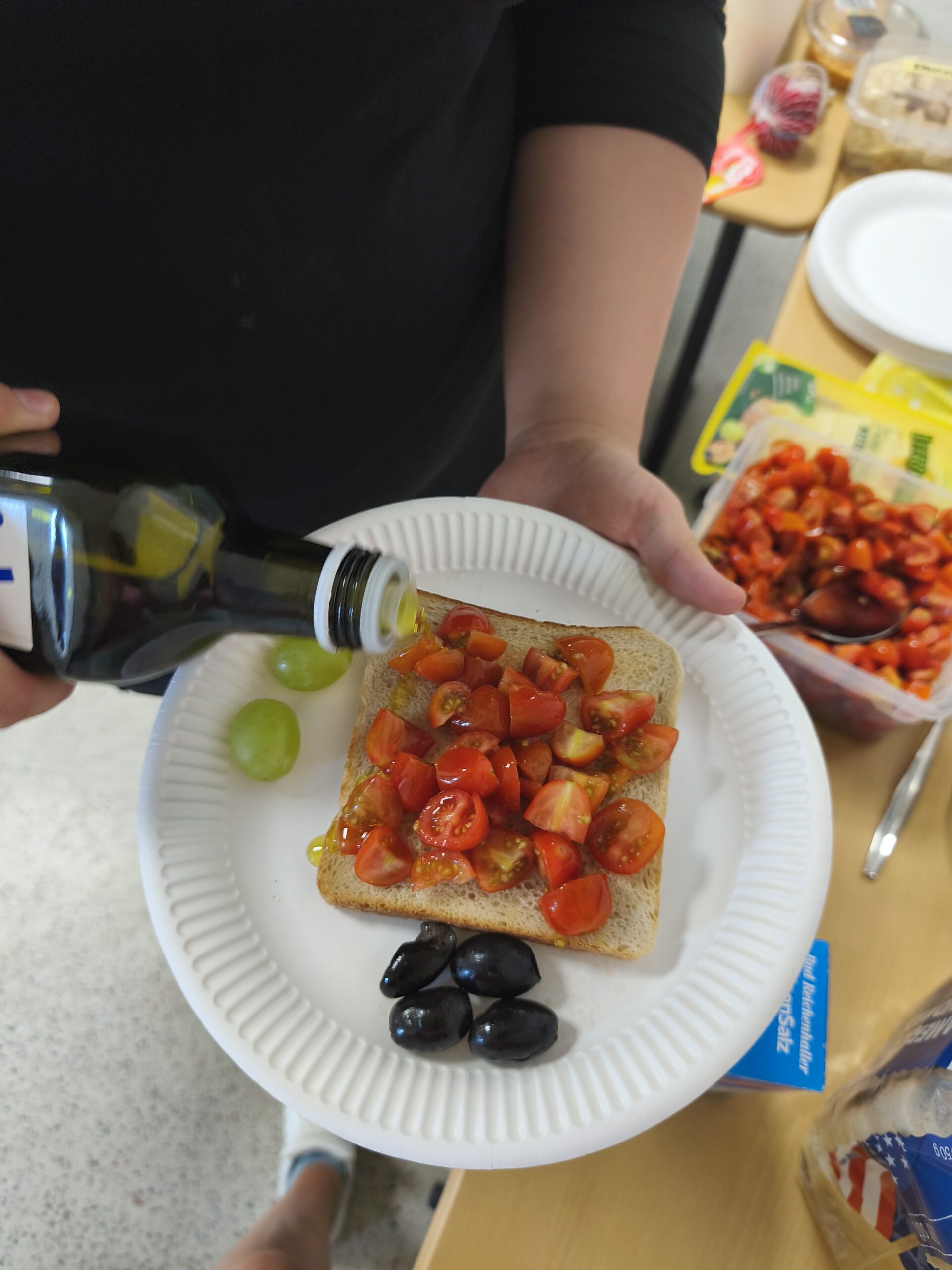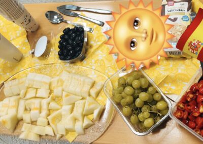 Die Schülerinnen und Schüler brachten frisches Obst, Oliven, selbstgemachte Dips und süße Speisen mit.