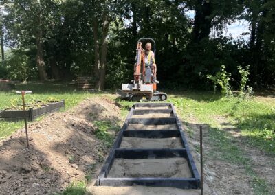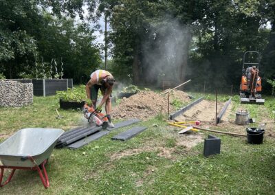 In unserem Schulgarten entsteht gerade etwas ganz Besonderes: ein Barfußpfad!