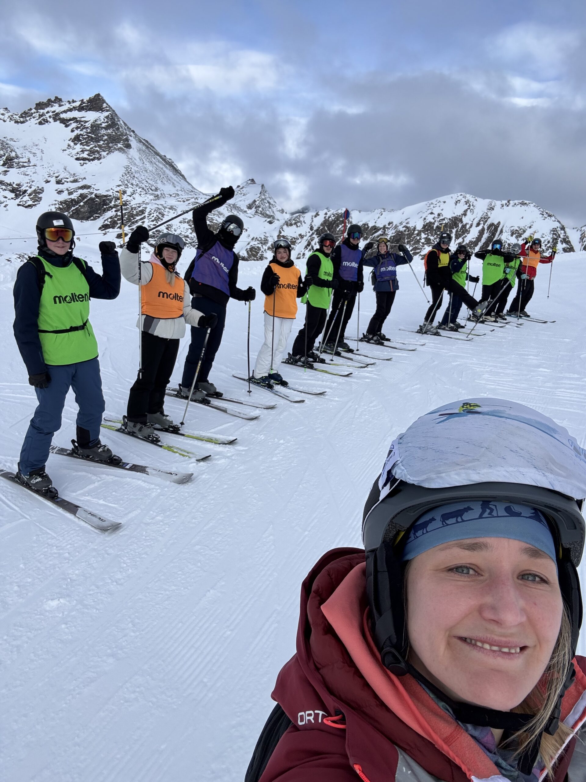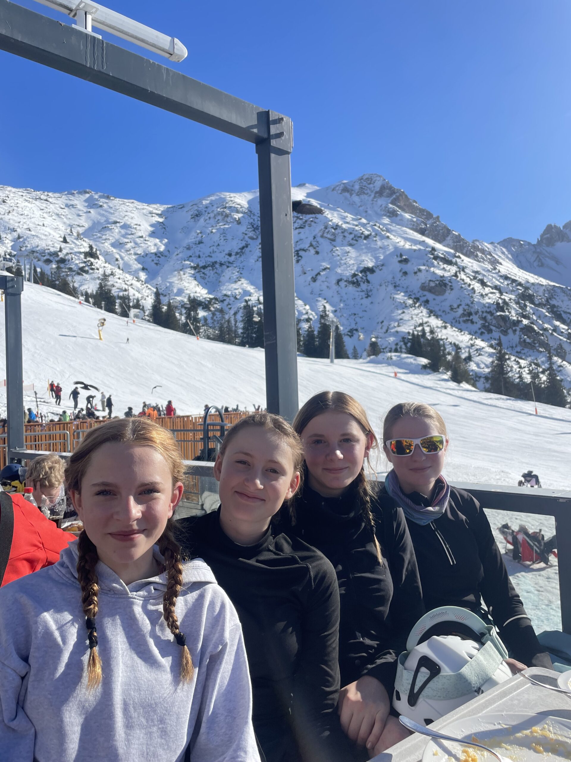 Nach der achtstündigen Busfahrt bezogen wir anschließend unsere Zimmer und besorgten uns unsere Skiausrüstung für den nächsten Tag. Am ersten Skitag durften wir unser erstes Frühstück genießen und fuhren anschließend mit dem Skibus hoch zur Talstation. Oben angekommen, wurden wir mit viel Sonnenschein überrascht und in 3 Gruppen eingeteilt, jeweils in Anfänger, Fortgeschrittene und Profis.